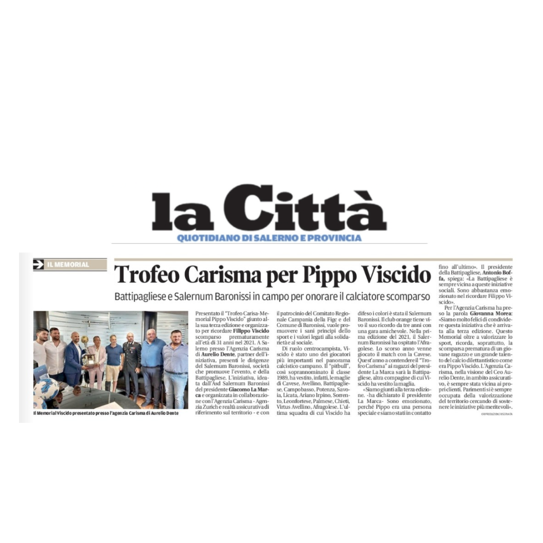 Si è tenuta presso la sede dell’Agenzia Carisma di Aurelio Dente la conferenza stampa di presentazione del “Trofeo Carisma – III Memorial Pippo Viscido”, in programma mercoledì 30 agosto alle ore 20:30 allo Stadio Figliolia di Baronissi.